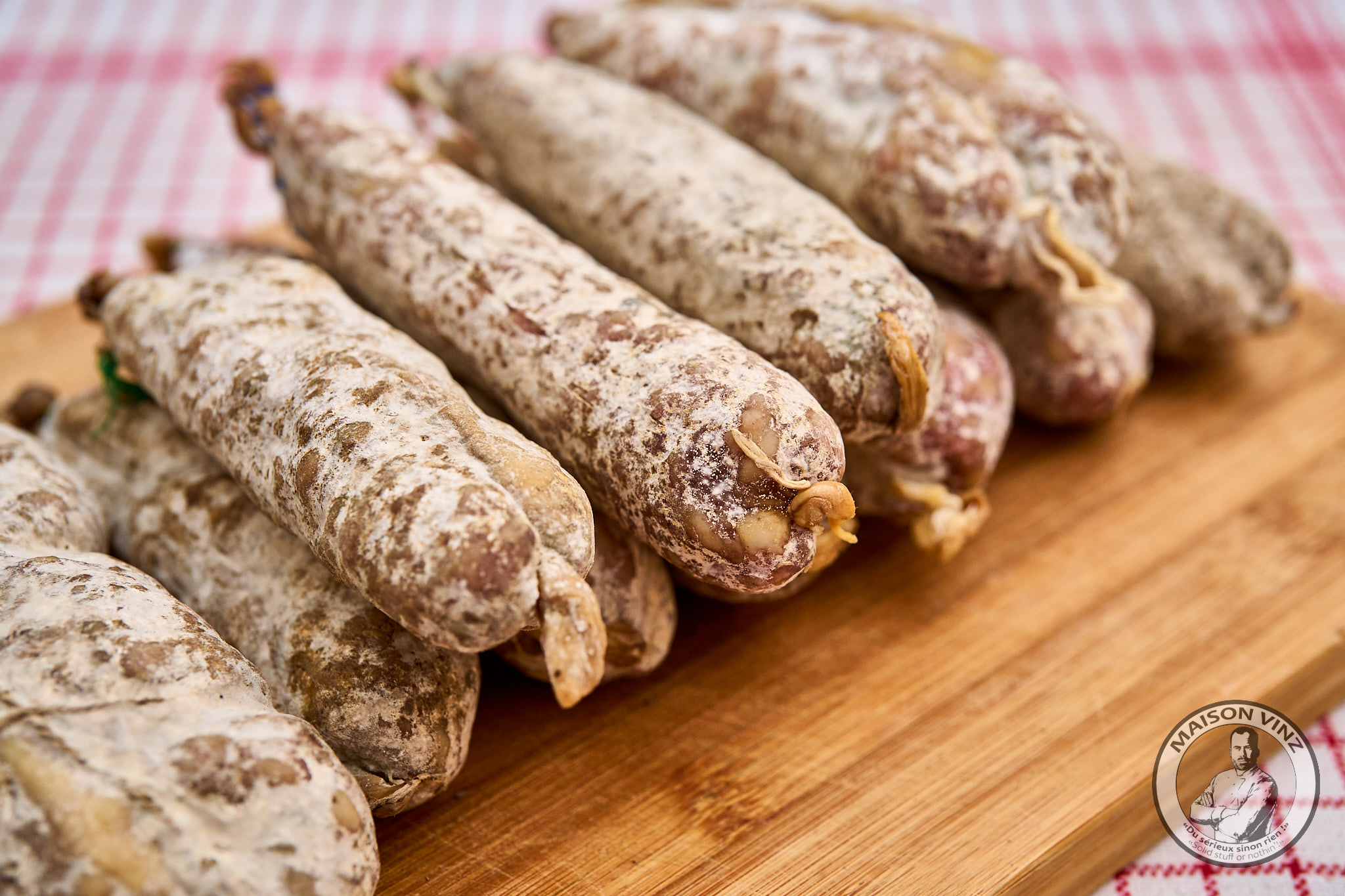 Sélection Maison Vinz de 12 saucissons artisanaux d’Ardèche, naturels et fabriqués selon la tradition.